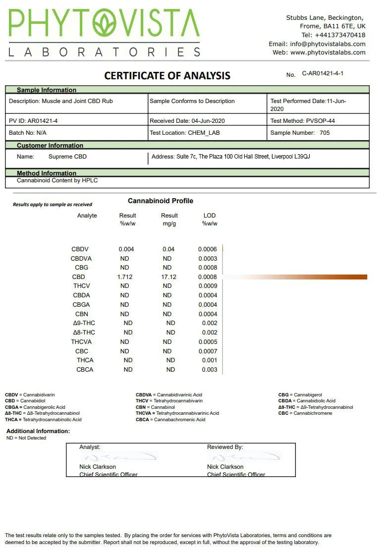 This easy to use formulation contains 1000mg of Broad Spectrum CBD. Extracted using a specialist CO2 process, the gold standard in extraction, which has been developed to isolate and remove any unwanted compounds, while creating the maximum potency level of phytocannabinoids. Cutting-edge technology has been employed to ensure you get a product that includes the highest levels of CBD. Our hemp-based phytocannabinoids offer an organic, non-GMO formulation with no chemical solvents. All of Supreme CBD's own CBD products are derived from premium quality hemp strains and are all third-party lab tested to ensure they are of the highest quality.